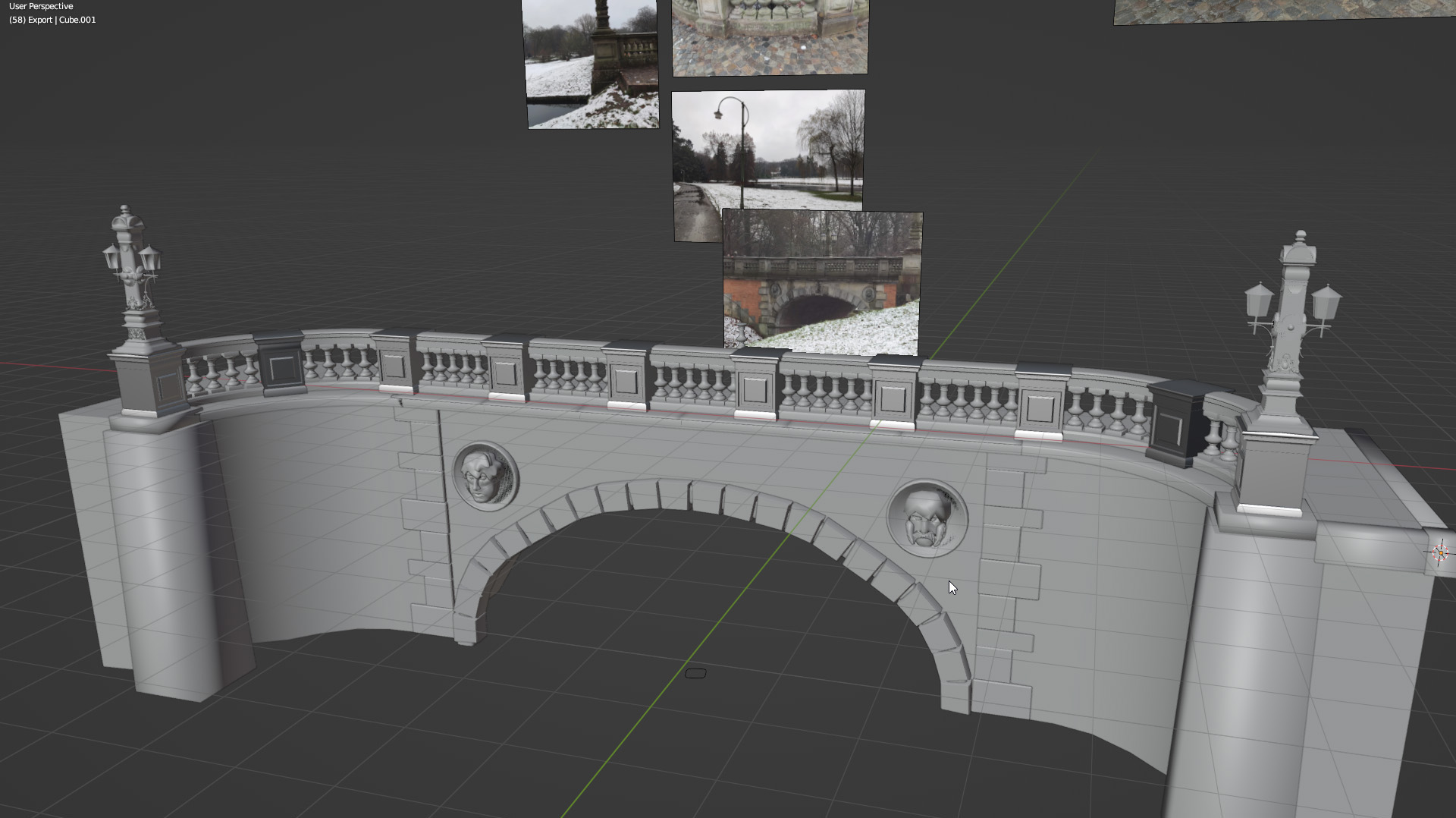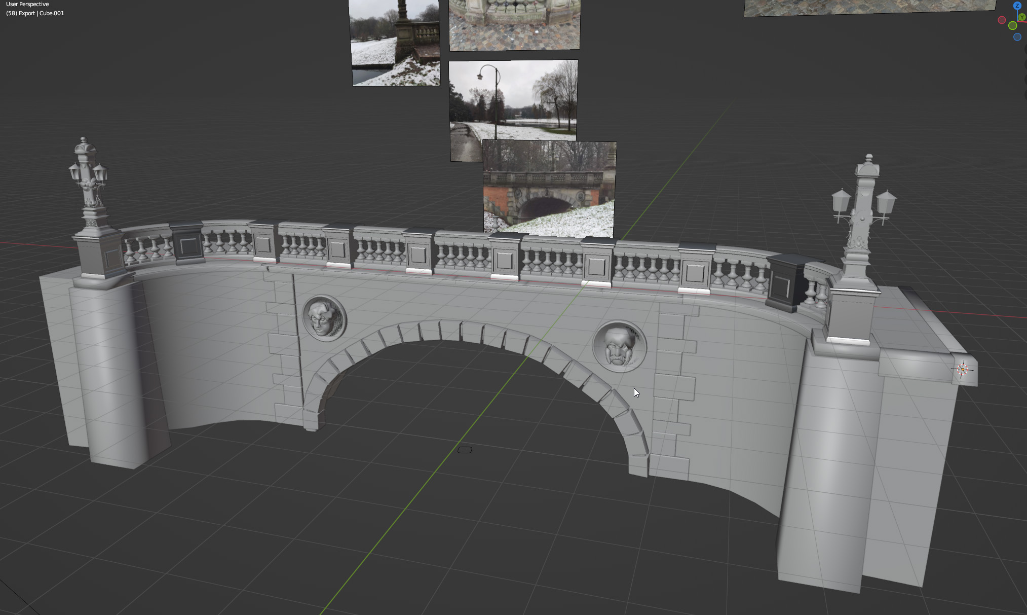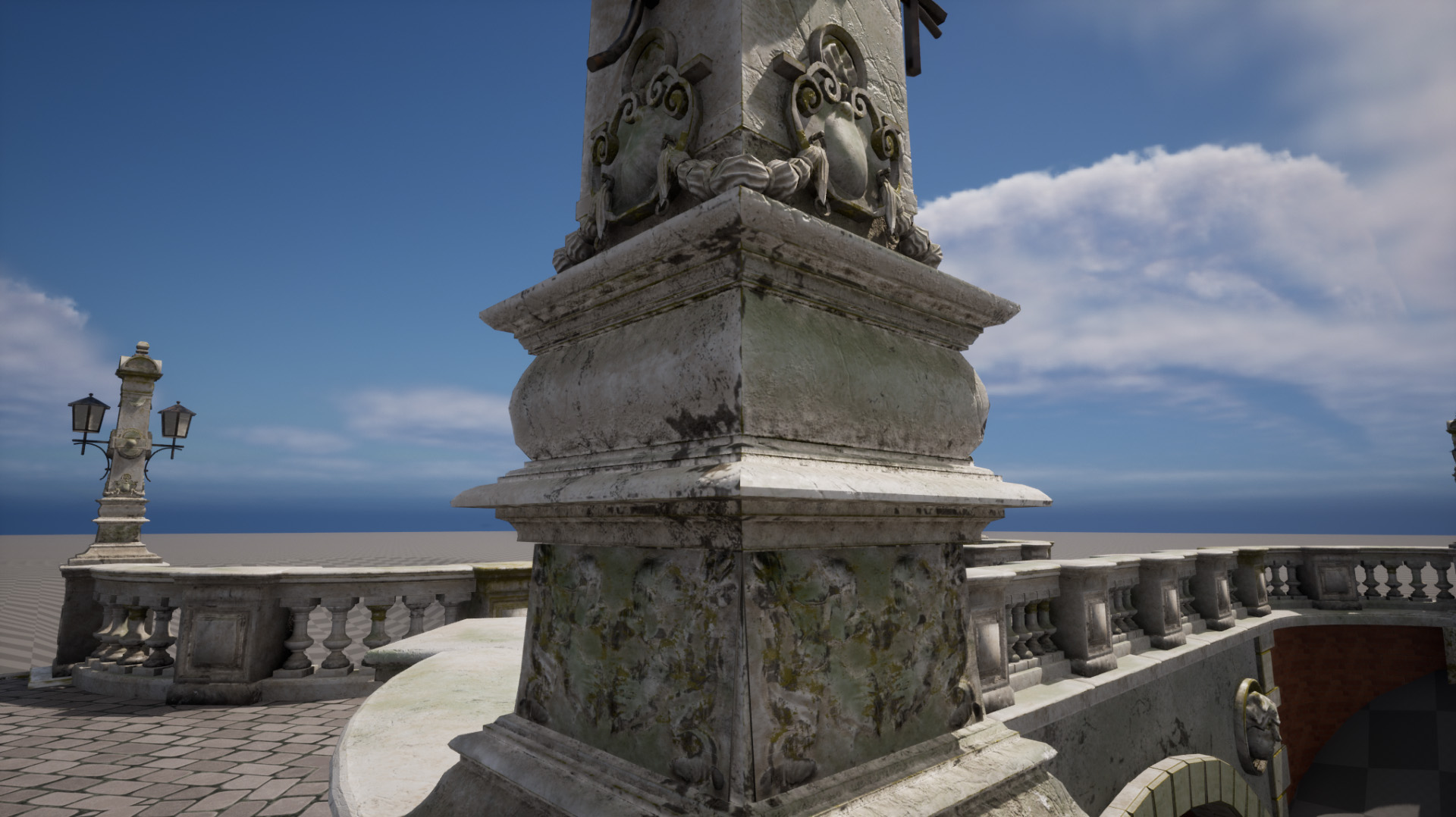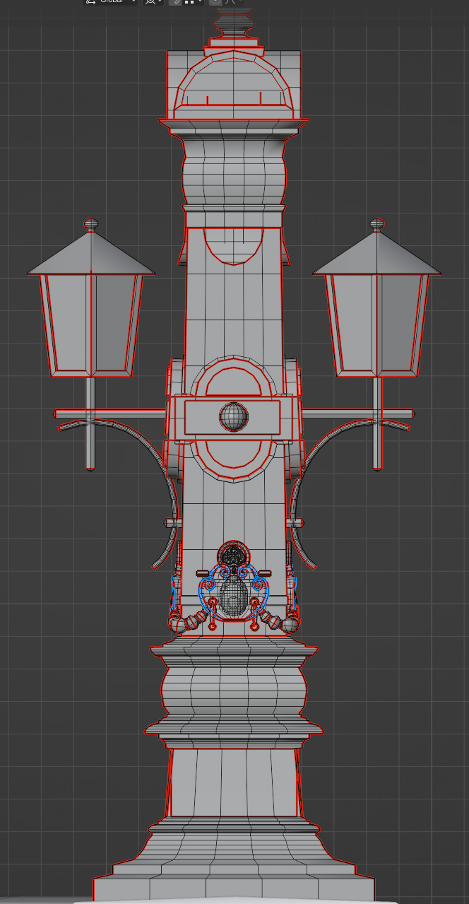 ornaments on the lamp post were mostly sculpted and then baked onto lower poly meshes in Substance Painter. The UV maps where also done by hand to maximize texture resolution.