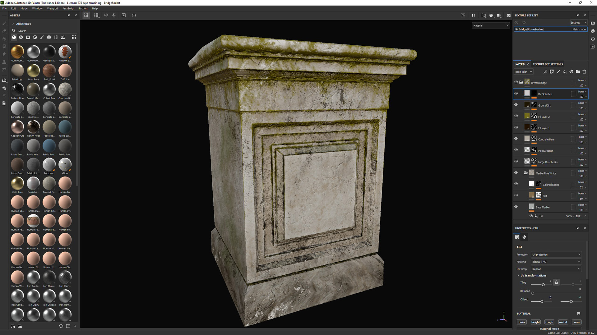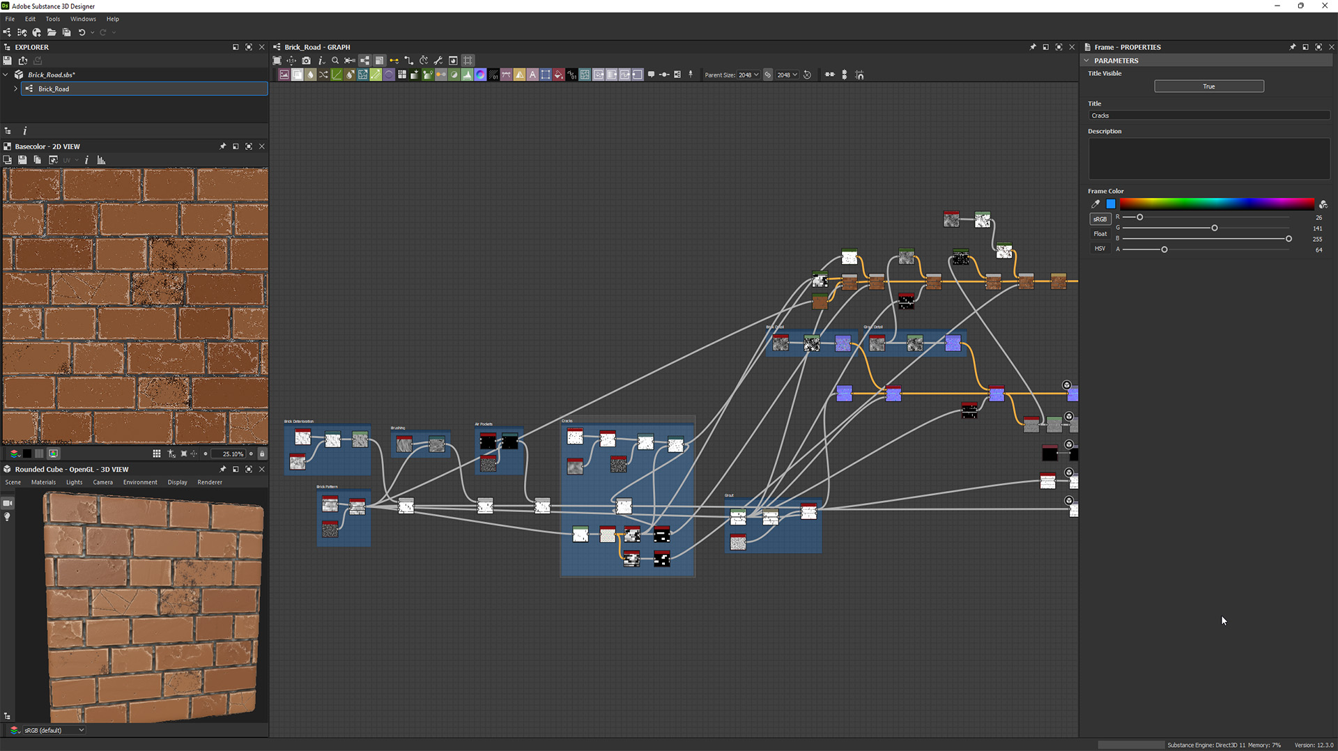 The stone materials were all done using Substance Painter, whereas the cobble and brick materials where done using Substance Designer.