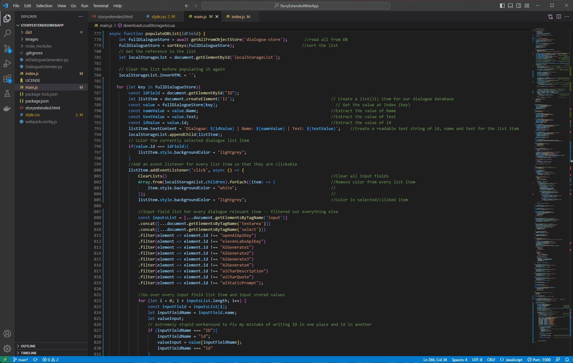 The StoryExtended Web App is basically entirely locally run, only making API calls when needed for AI generation. Everything is automatically saved locally in the browsers IndexedDB, which lets users continue where they left off. The goal is to give the user full control while still keeping everything user friendly. The dialogue download automatically converts the dialogue DB into a .lua file so that it is readable by the World Of Warcraft addon. From there on out it's plug and play to get the newly created dialogue running in the game.